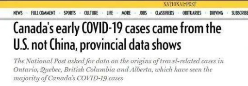 4月30日,加拿大《国家邮报》援引4个主要新冠疫情大省的统计数据报道称,虽然新冠肺炎疫情最早在中国暴发,但是把这个病毒传入加拿大的却是美国旅行者。