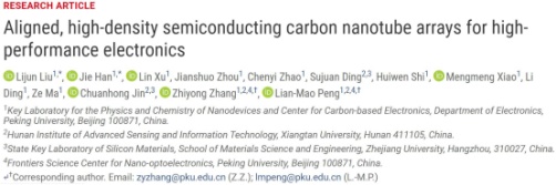 北大教授突破碳基半导体技术,在《科学》发表三篇论文!“中国芯”梦想更进一步