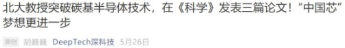 最后,有一点值得讨论的是,媒体在报道这项成就时,往往用“中国芯”这样的词,例如深科技的文章(北大教授突破碳基半导体技术,在《科学》发表三篇论文!“中国芯”梦想更进一步)。