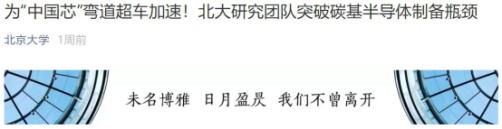 就连北大自己的宣传,都用这样的标题(为“中国芯”弯道超车加速!北大研究团队突破碳基半导体制备瓶颈)。