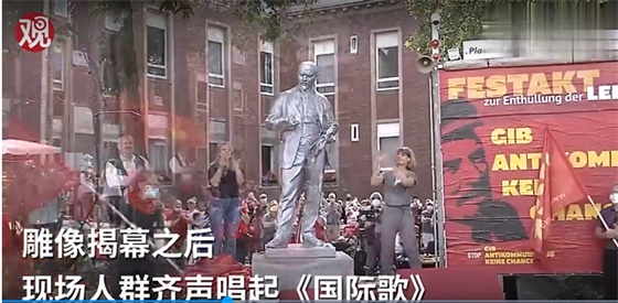 德国城市竖列宁雕像人们唱国际歌 网民:这时候能竖立起来是奇迹