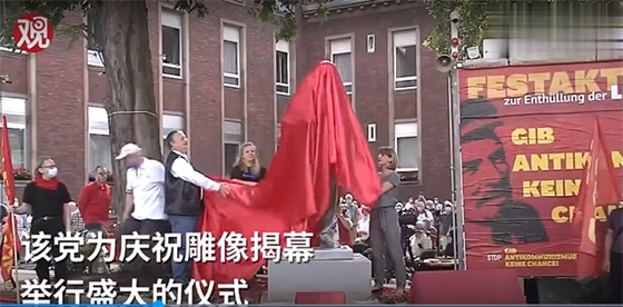 德国马列主义党发言人彼得·魏斯普芬宁对俄罗斯卫星通讯社称,尽管遭到右翼激进分子、市政当局和德国总理安格拉·默克尔领导的基督教民主联盟党的反对,他们还是把一座高2米的弗拉基米尔·列宁雕像建了起来。该党为揭幕仪式举行了招待酒会,摆上了蛋糕和德国香肠。一些支持者也来到现场,他们挥舞着红旗,欢呼不断。为了防止新冠病毒传播,与会者被要求戴上口罩,保持社交距离。雕像竖起后现场人群一起高唱国际歌。