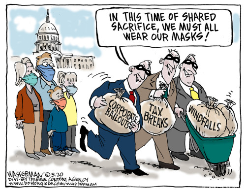 但是,看看现在发生了什么。截至2020年5月下旬,至少有4500万美国工人失业。在短短两个月内,他们损失了1.3万亿美元的收入。其中超过1万亿美元的损失是由于失业造成的。另外$ 2600亿美元是由于工作时间缩短所致。工资减少了1.3万亿美元!像在所有衰退中一样,工人的确经历了严重的工资下降,包括失业(没有工资),工作时间缩短,福利遭到削减和损失,雇主的养老金缴纳额减少,工资被盗用等。工资在今天的下降比以往任何时候都更快,程度都更严重。企业和投资者是否因为工资下降而进行支出和投资呢?否。他们贮积了1.74万亿美元的国会贷款和救助资金。迄今为止,他们还贮积了6500亿美元的税收减免(需要补充的是,媒体对此从来都不报道)。