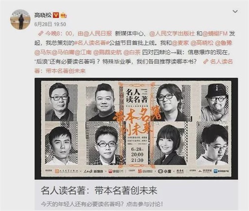 近日,人民日报邀请了高晓松等人参加一个节目,本来人民日报以为弄得高大上的宣传图片,让人以为又是一场思想文化界的“海天盛筵”。