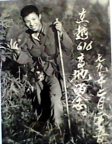 (这是在南国山地的我,照片由部队宣传干事拍照。需要说明的是,手中竹棍不是为了摆拍,而是夜晚穿插行军必备的探路工具。)