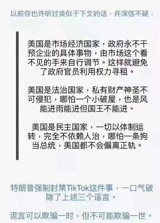 当然,我们现在知道,TT的老总,就是这样的一个精美,在他眼里,美国的法治、民主、市场经济的自由竞争,简直是天下最完美的存在。