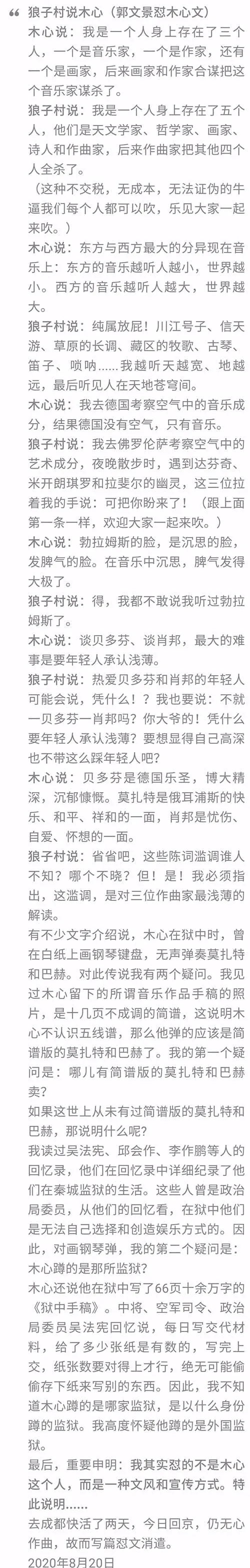 至于被广泛传颂的“狱中写了66页十余万字的《狱中手稿》”的自我吹嘘,被人家郭文景用简单的逻辑推理三言两语就给揭穿了。