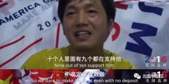 希拉里的应援旗不好卖,而特朗普的应援旗市场之大,没定金都敢接,