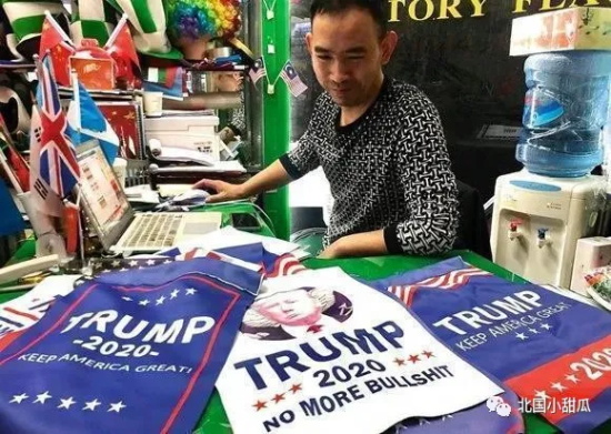 “三种旗卖得最好,印有‘Trump 2020’的销量第一,排名第二的是‘Keep America Great ’,排名第三的是‘No more Bullshit’。”