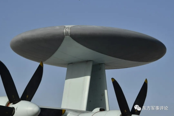 空警-500采用的圆盘状雷达罩是与空警-200在外形上最大的区别,空警-500装备的三面阵有源相控阵雷达是目前世界上探测精度最高的一款雷达,同时也是同等天线尺寸中探测距离最远的一款雷达系统。圆盘状雷达最大的优点是可以实现360度无死角扫描,相比之下,空警-200的平衡木雷达主要是侧面扫描能力强,而前后方向存在一定的死角。