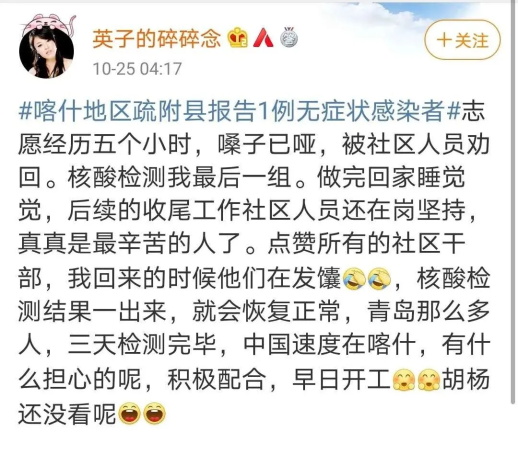 10月,新疆喀什,此微博发送时,已凌晨4点,