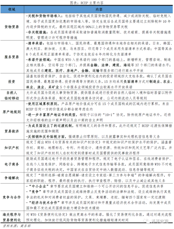 RCEP核心在于增强货物贸易、服务贸易、投资以及人员流动方面的市场开放,尤其在关税上取得重大突破,给予“渐进式”零关税政策。