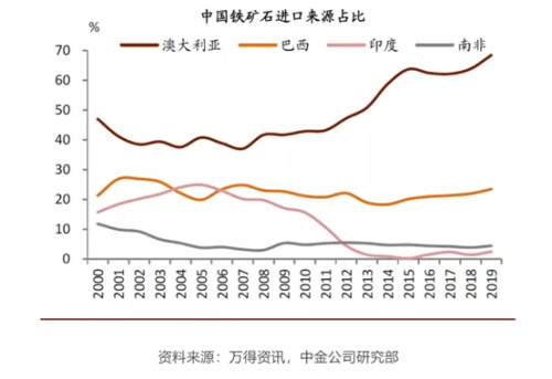 从下图可看出,巴西长期是我国第二大铁矿石进口来源。