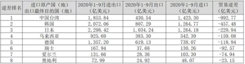 其中阿曼是我国第10大逆差来源为94.49亿美元,