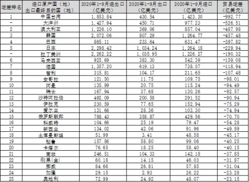 值得一提的是出差石油的委内瑞拉并不在前25位逆差来源,