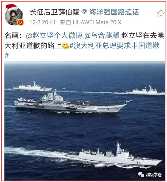 听著名的七字党网友长征后卫薛伯陵说,赵立坚和乌合麒麟已经知错,而且想当面道歉,目前正在去澳大利亚道歉的路上,有名画为证(下图)。