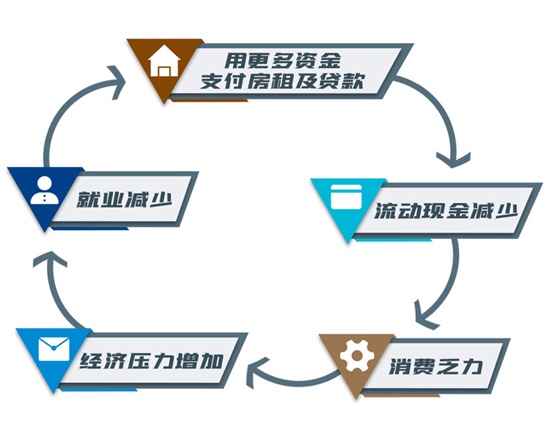 据分析,低收入者将把更多的资金用于付租金、还房贷,将使流动资金减少、消费乏力,从而影响经济活力,最终陷入“恶性循环”。