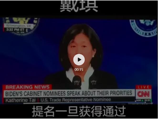 拜登拟任命华裔女律师戴琦为贸易代表