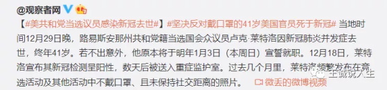 哈里斯(贺锦丽是她的中文名字)被现场抓包了,拜登的现场抓包帖子也有,我就不放了,多了也不好。对比拜登和哈斯里打假针祸害美国人民,我更欣赏这位是个汉子!坚决反对戴口罩的美国共和党议员卢克因为新冠肺炎并发症去世,终年只有41岁!简直就是天妒英才啊,这家伙虽然脑残,但是至少人家言行合一啊!