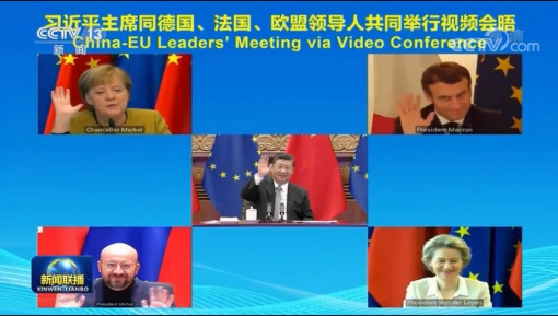12月30日,中欧投资协定谈判达成!在视频图片上欧盟领导人笑成一朵花。