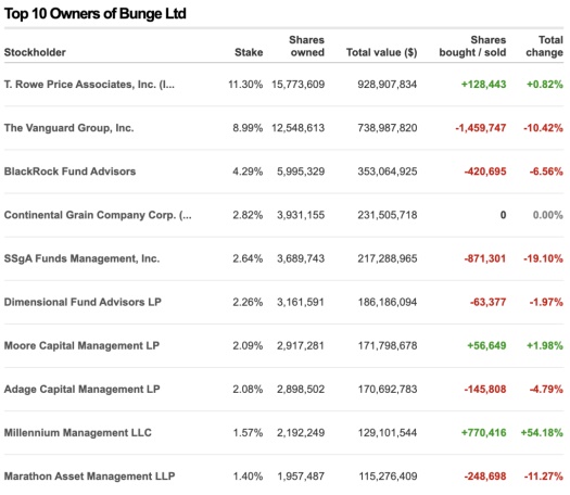 打开跨国粮商的股东列表,看到的才是领航投资、贝莱德、SSGA等国际顶级资本集团的身影。这些农业巨头、金融寡头和国家资本通过交叉持股等方式,绑定成了一个庞大的利益集团。