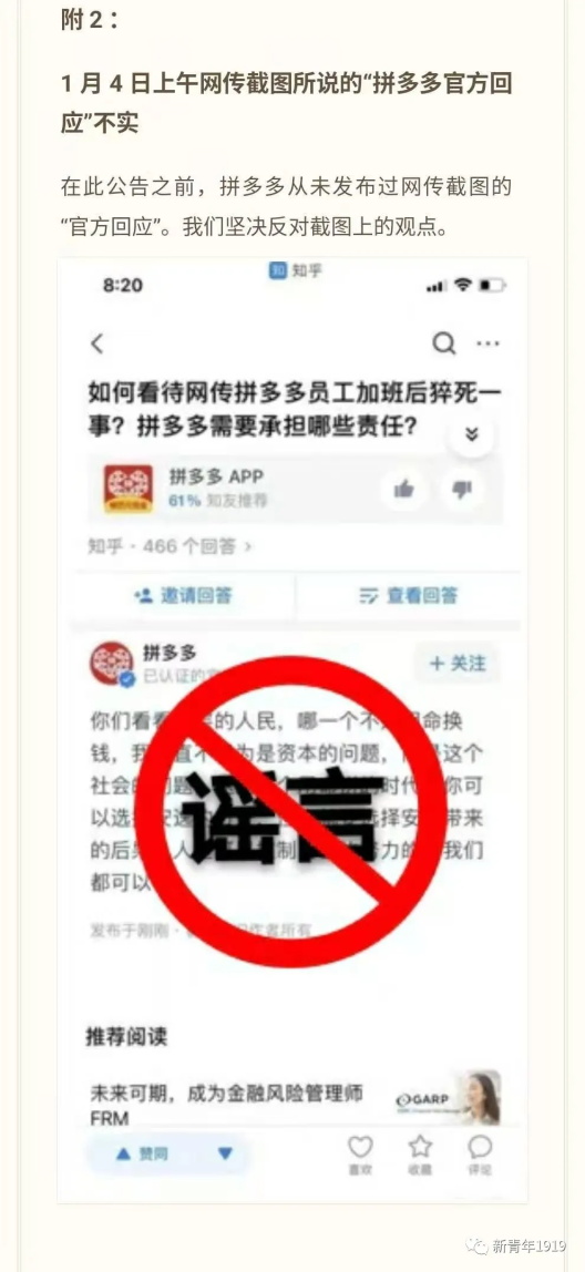 “拼多多从未发过网传截图的“官方回应”,坚决反对截图上的观点。”