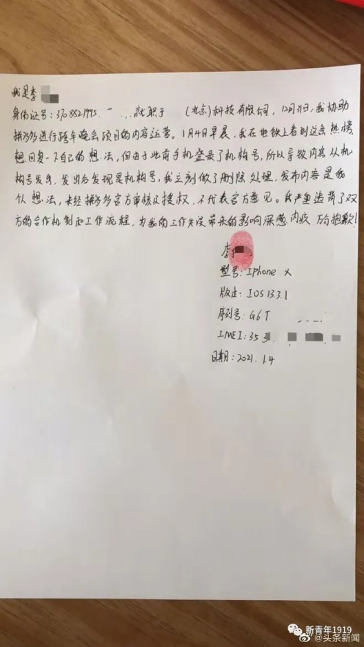 望着这位背锅的李某某颤颤巍巍的道歉信,我的心中满是心酸: