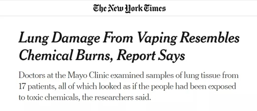 2019年10月2日,《纽约时报》在另一篇报道中详细介绍了电子烟疾病的病例。