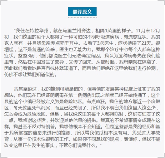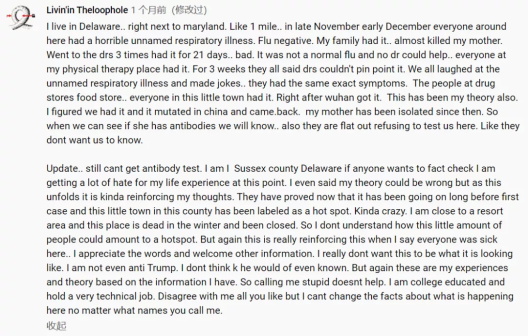 迈克尔·梅勒姆不是个例,多名网友也纷纷表示,在中国疫情之前,感觉新冠病毒已经在美国传播。