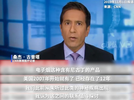 2019年11月1日,美国有线电视新闻网(CNN)在一档节目中,报道了一起疑似电子烟肺病死亡病例。患者玛丽·凯利在去世两个月后,其家人仍然无法确定死因是否与电子烟有关。CNN首席医疗记者桑杰·古普塔在连线时表示,美国从2007年开始售卖电子烟,此前从未出现过类似的神秘肺病案例,这两者之间的关系仍然值得探讨。