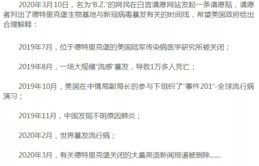 是否是德特里克堡生物基地的病毒泄露?全球流行病演习为何跟现实如此类似?随着美国疫情暴发,社交媒体上,对美国政府的问号越来越多。