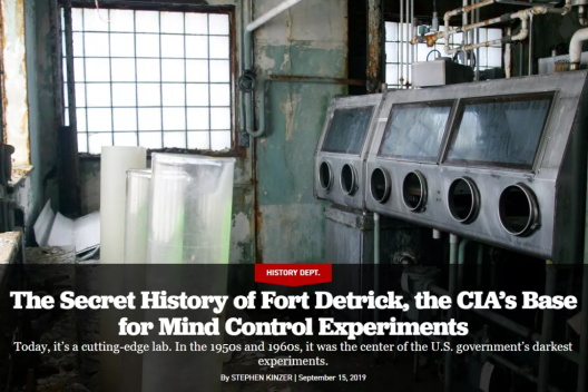 美国“政治”新闻网站的一篇报道,标题加粗,大写着这样一段话:德特里克堡秘史——中央情报局意识操控实验基地。