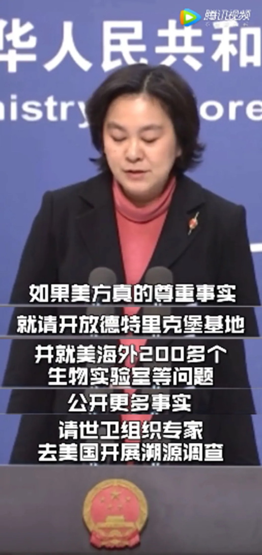 1月18日,外交部发言人华春莹表示,如果美方真的尊重事实,就请开放得特里克堡基地,请世卫组织专家去美国开展溯源调查。