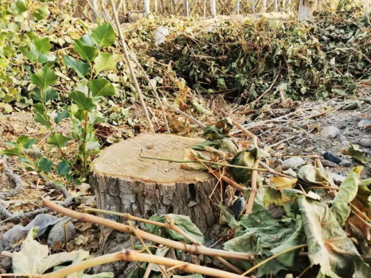 记者穿行于阳关林场部分林地,随处可见大小树木被齐刷刷地从底部锯断,每隔数米就有砍伐后留下的树桩,间或有被截好的木头,横七竖八躺在林地,从树桩尺寸判断,有的树木已有碗口粗,不少稍大一点的树桩,干径达到30厘米,散落的枝干也如成人臂膀一样粗壮。有林场职工指着这些树桩对记者说,被砍树木皮层水分饱满,极少看见有空心,连枝桠和上梢都色泽新鲜,绝大多数都曾是存活良好、长势健壮的树。