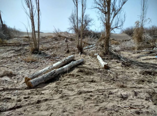 图为林场内四处可见被砍伐的胡杨树。(当地志愿者2016年摄)