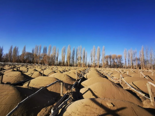 据介绍,阳关林场原有高大乔木枯枝落叶腐殖后,有机质多年聚集,促进了细沙成土,改变了沙地性质,使得流沙趋向固定。而在当地种植葡萄,枝干需埋土防寒,秋冬埋土、春季出土要进行两次土壤大翻动,人力作用使得地表沙质疏松,形成流动沙土。从当年11月到翌年4月,葡萄园地表土裸露时间长达半年,而冬春季节大风天气频繁,不仅人为制造了大面积沙尘源,还加剧了林地土壤风蚀。