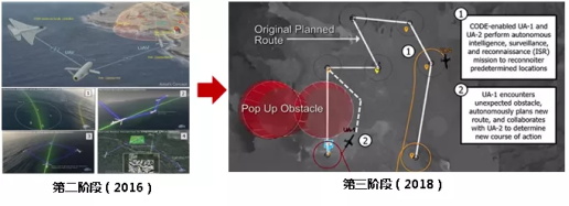 第三阶段从2018年1月开始,测试使用6架真实无人机以及模拟飞机的协同能力,实现单人指挥无人机小组完成复杂任务。