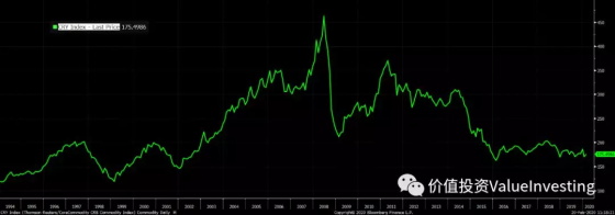 中国的外汇储备见顶,原材料价格又决定了石油和原材料供应国的外汇储备见顶,(附件6: 石油价格图)(附件7: 原材料价格指数图)全球外汇储备也见顶,美国的贸易逆差即便见了顶也还是逆差。每年的逆差累计存量转化为美国的对外总借债,即便美国的逆差不再增长,美国也没有可能实现贸易平衡。因此,美国的外债问题永远是美国经济安全的一个不定时炸弹!