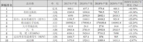 另外一个值得警惕的是手机产量的大幅下降,2020年手机产量比2017年下降了22.24%。