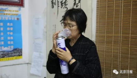 2019年10月15日,盯完学生们课间操后的张桂梅回到办公室吸氧、吃早餐、吃药。新华网 丁凝 摄
