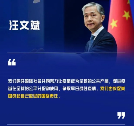 对此,中国外交部发言人汪文斌表示,美国既然这么关心中国是否遵守《禁止生物武器公约》,那就更应该在该条约的基础上,建立核查机制,美国为什么不同意呢?美国到底有什么见不得光的?就在不久前,有俄罗斯官员就表示,新冠病毒就是从美国的生物实验室出来的,确实不能排除这个可能。