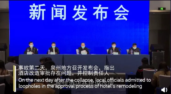 这真的是美国大楼的特色,中国大楼就不存在这些阻碍救援的因素。泉州的大楼,是3月7日晚上7点坍塌的。当天晚上,事故责任人就被控制,第二天上午,新闻发布会就召开了,表示要严惩相关责任人。
