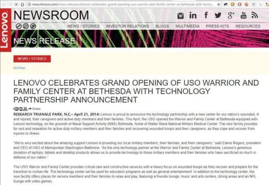 2004年之后,联想把总部从香港搬到了美国纽约,在美国拥有几万员工,并为美国劳军组织捐赠电脑,同时致力于为美国军队提供技术支持。