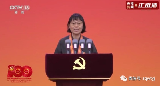 大家好!我叫张桂梅,是一名普通的人民教师。习近平总书记将代表党内最高荣誉的“七一勋章”授予我们29名同志,这份光荣属于奋战在各条战线上的每一名共产党员。请允许我代表今天受到表彰的同志们,感谢党中央对我们的充分肯定,感谢广大党员群众对我们的支持和信任!