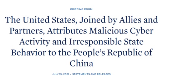 7月19日,美国和欧盟、英国、澳大利亚、加拿大、新西兰、日本和其他多个北约盟友发表联合声明,称中国国家安全部利用“非法招募的黑客”在全球范围内从事了一系列破坏稳定的个人利益活动。同日,美国司法部表示,对4名中国公民发起起诉,理由是这些人实施了针对美国和海外数十家公司、大学和政府机构的全球黑客行动。司法部的声明指,这4人中有3人为海南省国家安全厅官员,另一人则为国安“幌子公司”技术人员。美国策划的类似抹黑中国的活动已屡见不鲜,但这次却有所不同。其很不寻常的栽赃中国国家安全机关,且同日“三连击”,除采取上述措施外还指使欧盟理事会发布了另外一份声明,指责中国利用微软的Exchange服务器进行了网络攻击。今天“小贝说安全”带你直击这一突发事件,并分析事件背后的美方意图。