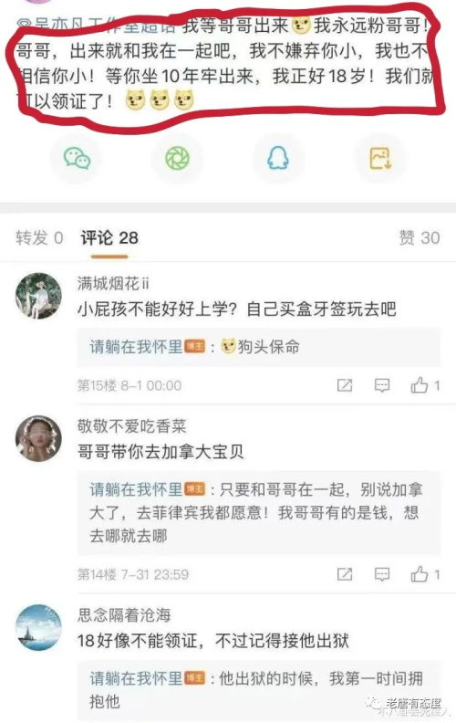 三:接受了吴亦凡所犯事实,但把自己套进了一个痴心人设,口口声声称要等待他重返的一日。