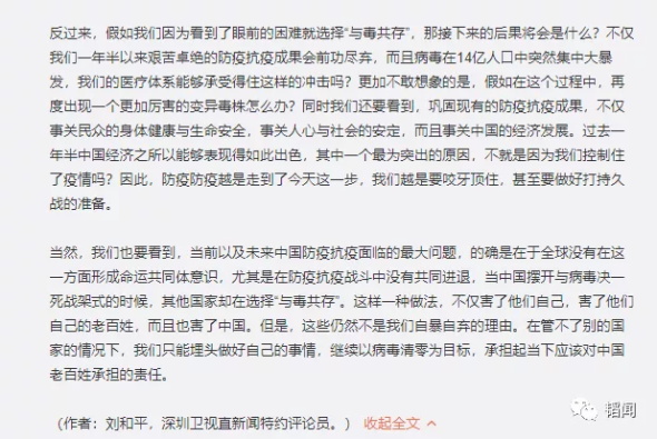 他指出:不仅我们一年半以来艰苦卓绝的防疫抗疫成果会前功尽弃,而且病毒在14亿人口中突然集中大暴发,我们的医疗体系能够承受得住这样的冲击吗?更加不敢想象的是,假如在这个过程中,再度出现一个更加厉害的变异毒株怎么办?