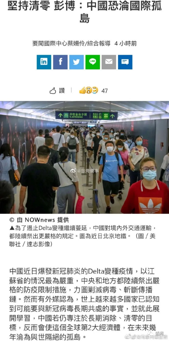 昨天,美国的彭博社发布了一篇报道,说“世上越来越多国家已认知到可能要与新冠病毒长期共处的事实,并就此展开学习,中国若仍专注于长期消除、清零的目标,反而会使这个全球第2大经济体,在未来几年沦为与世隔绝的孤岛。”