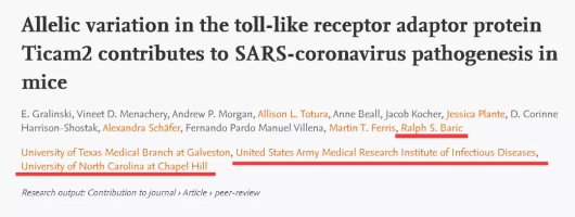 1.巴里克和他危险的冠状病毒改造技术,正被广泛引用在美国德特里克堡内IRF-Frederick和USAMRIID这两个官方和军方病毒实验室的科研项目之中。