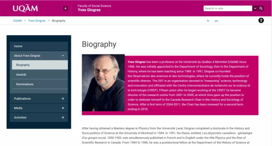 作者伊夫斯·金格拉斯,图片来源:来自蒙特利尔魁北克大学官网